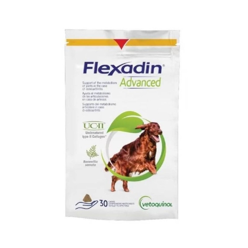 Donner une bouchée de Flexadin Advanced quotidiennement. Peut être donné directement au chien ou dans sa nourriture.