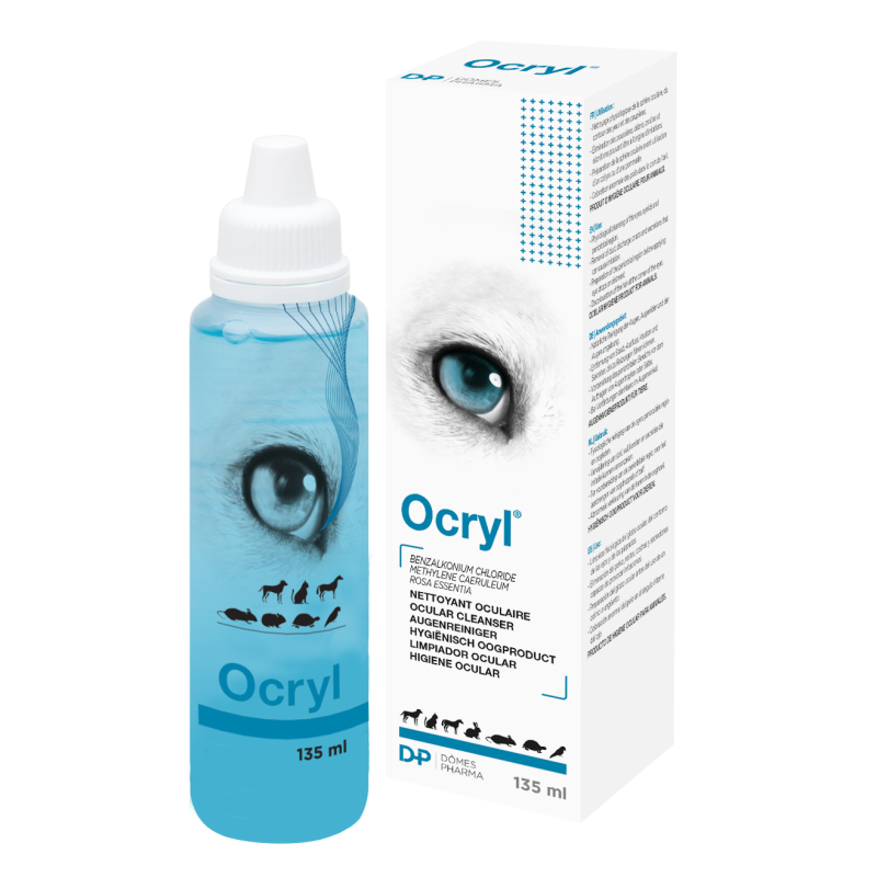 L'Ocryl Nettoyant oculaire pour chiens et chats est une solution stérile spécialement conçue pour le nettoyage des yeux. La valeur de pH de l'Ocryl est identique à celle des larmes et présente une tolérance excellente.