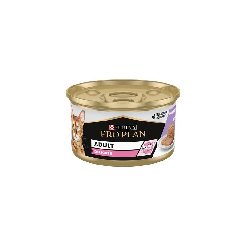 Purina Pro Plan Delicate Mousse Turkey est un aliment complet de haute qualité pour les chats adultes. Il a été spécialement conçu pour les chats sensibles et contient des ingrédients soigneusement sélectionnés pour assurer une alimentation équilibrée.